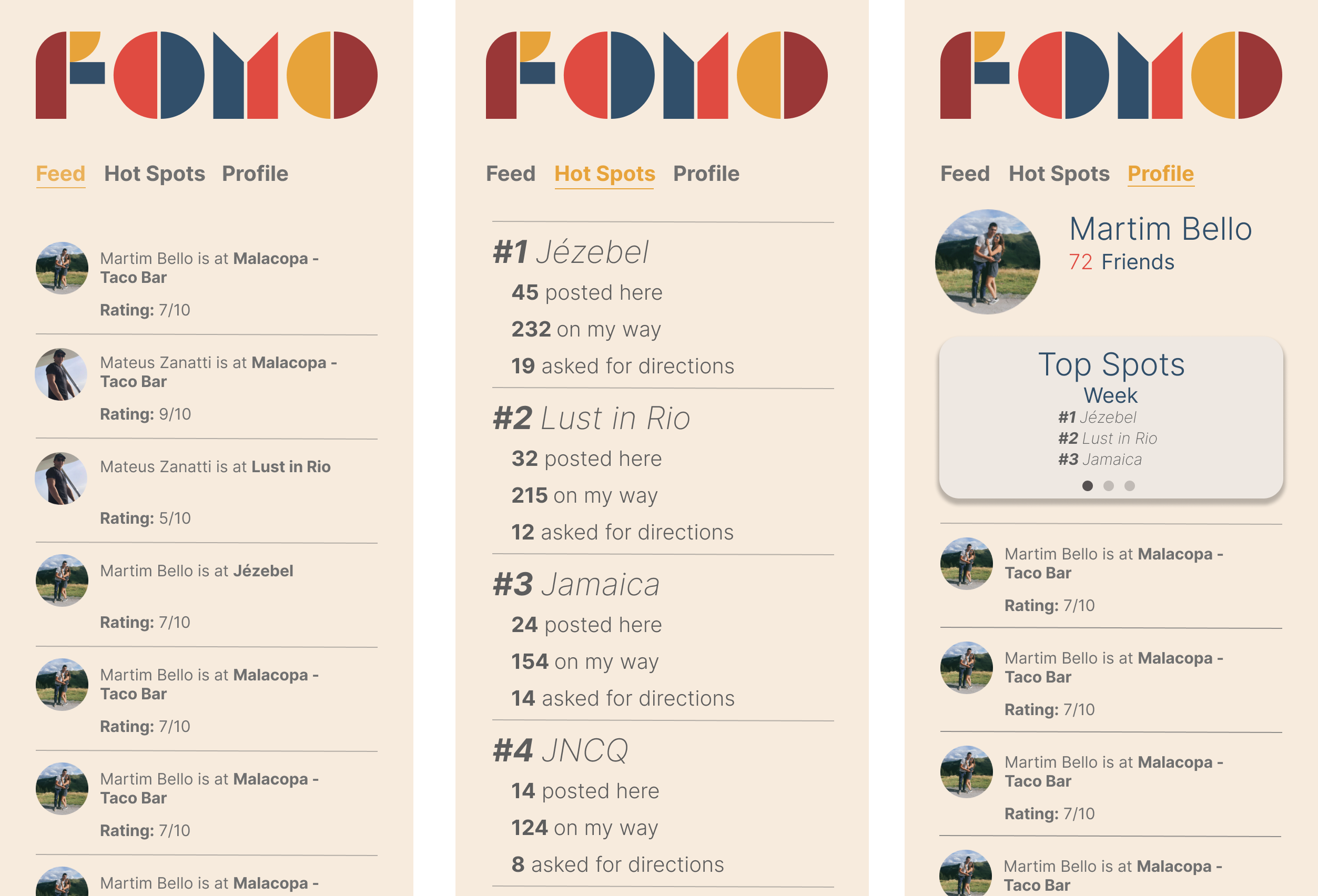 Soon, we realized my original design wasn't good enough to really catch people's attention. That's when we reached out to our friend Inês, a super talented UI/UX designer working in London. She already had great experience, so she helped us get our feet off the ground. She took our "below-par" design and transformed it into the foundation of what FOMO looks like today.